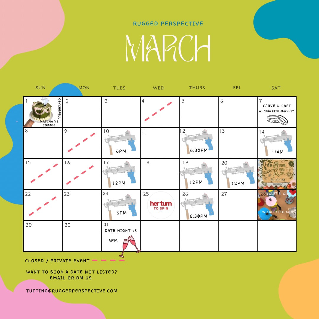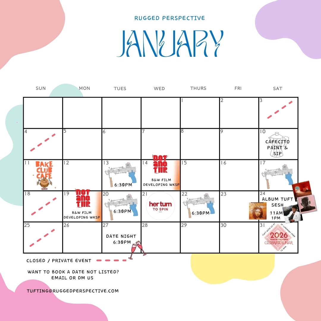 I know you've been seeing people tufting on Tik Tok and on Instagram. Now is your chance to try it out yourself. C'mon over to Rugged Perspective and pick a new hobby you can brag to your friends about. Can't wait to meet y'all <3